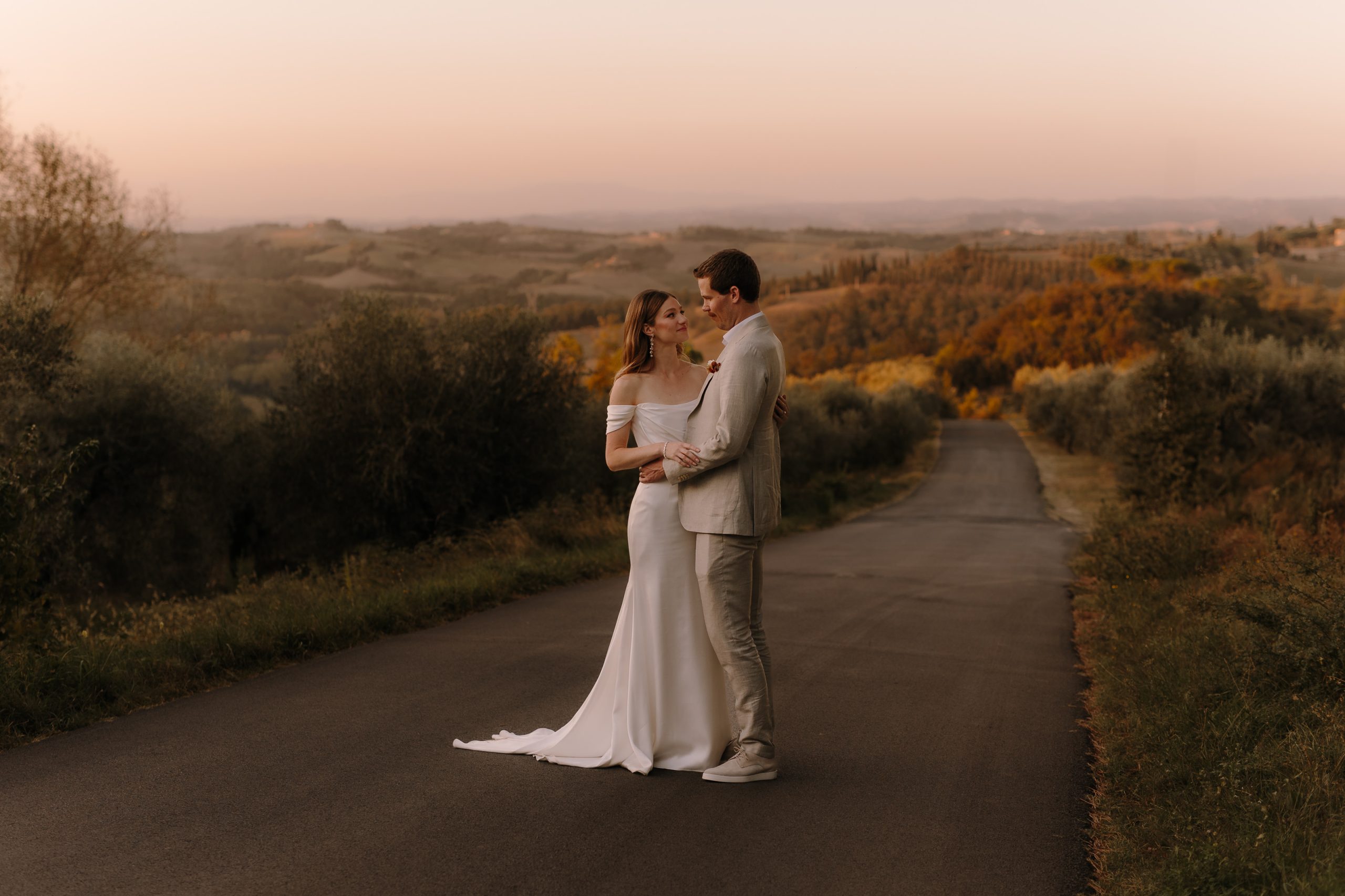 Chris and Alex gathered with their closest loved ones among the quiet hills of Tuscany. The ceremony was simple, sincere — vows spoken under the open sky, with the soft rustle of olive trees in the breeze. As evening fell, guests moved to a long, rustic table set for al fresco dining. Seasonal dishes, local wine, and candlelight carried the night in a slow, thoughtful rhythm. There were no grand gestures — only the beauty of connection, the stillness of the landscape, and the kind of love that feels at once rare and timeless.